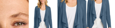 This crowd-pleasing cardigan, with its subtle slub texture, offers a carefree layering option for the office or any casual setting. 6.3-ounce, 60/40 cotton/polyester Open front Shawl collar with waterfall lapels Set-in sleeves Side seam pockets Elastic at back waist for subtle shaping Self-turned cuffs and hem