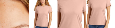 4.6-ounce, 60/40 ring spun cotton/polyester CVC blend Subtle heather texture on all colors except Pitch Black and White Recycled, high-performing black tear-away label Softstyle's high stitch density fabric offers a smoother printing surface Narrow width, rib collar Taped neck and shoulders Modern classic fit, seamless body Double-needle hem