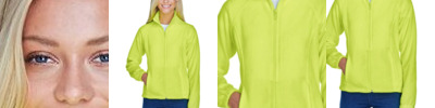 8 oz./yd², 100 % spun soft polyester fleeceNon-pill finish on surface Midweight fleece – highly breathable Front-zip pockets Binding at armhole's Dyed-to-match zippers and zipper pull Center front full-zip closure Inside zipper is clean-finished with taping Bottom hem with drawcord and toggles Back yoke