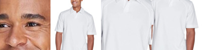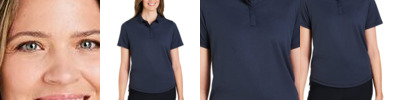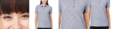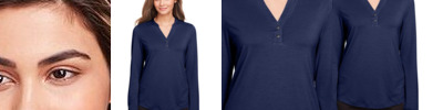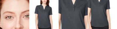 4 oz./yd² (US), 6.7 oz./L yd (CA), 100% recycled polyester embossed print interlock Moisture-wicking Anti-microbial performance Partial-open henley with metal two-snap closure Side vents Hi-low hemline