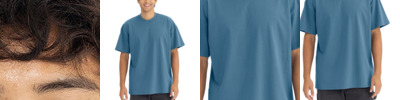 Modern fit Side seamed Tear-away label 4.2-ounce, 52/48 Airlume combed and ring spun cotton/polyester, 32 singles Athletic Heather and Black Heather: 90/10 Airlume combed and ring spun cotton/polyester
