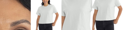 Boxy relaxed fit Double-stitched 7/8 neck Drop shoulder Side seamed Tear-away label 7.5-ounce, 100% Airlume combed and ring spun cotton Athletic Heather: 90/10 Airlume combed and ring spun cotton/polyester