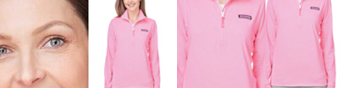 - vineyard vines pink woven label on left-chest and back collar